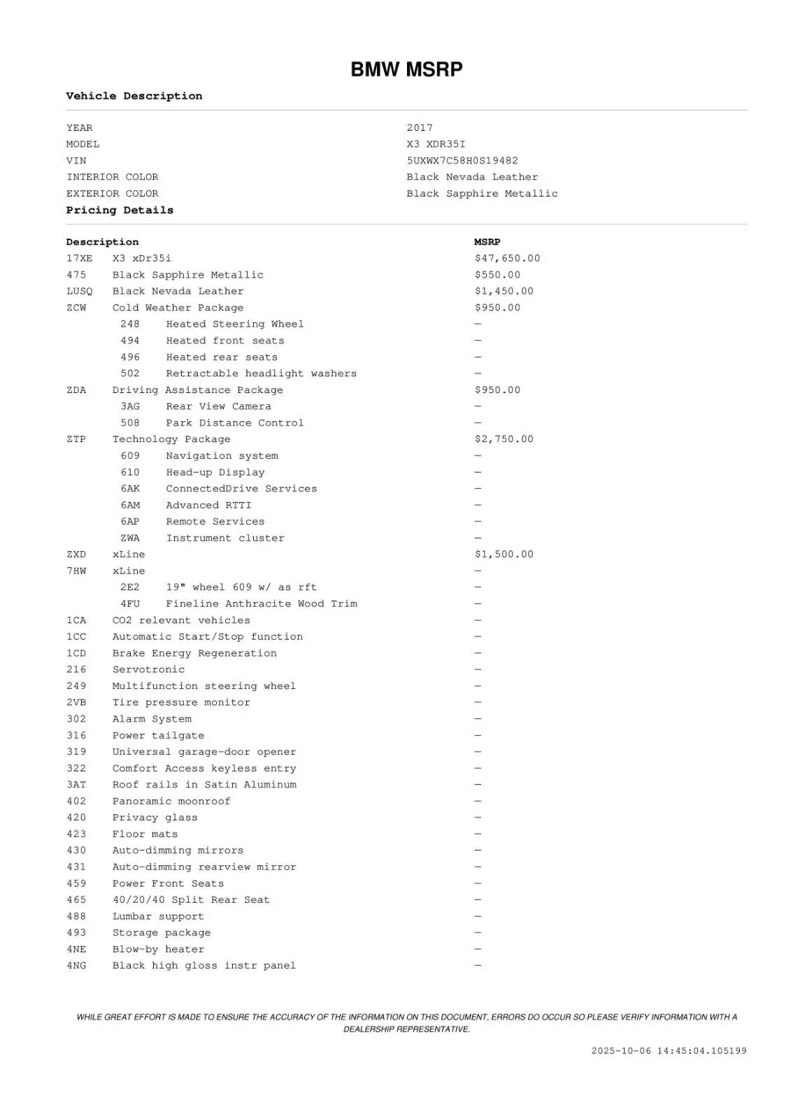 Miles: 57,355 • VIN: 5UXWX7C58H0S19482 • Stock #: 8M51319B